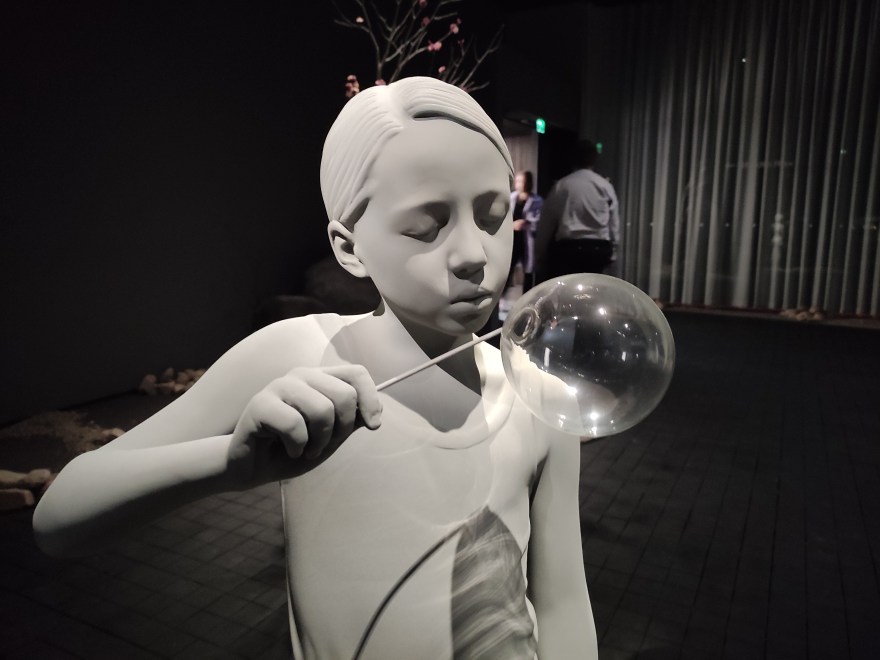 Hans Op De Beek, Tatiana (saippuakupla), polyesteri, metalli, lasi, lyijy, pinnoite, 48x50x125 cm, 2017