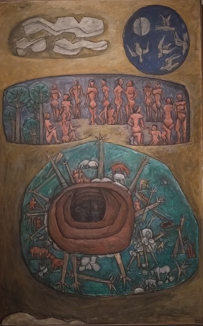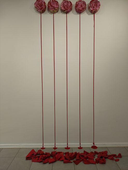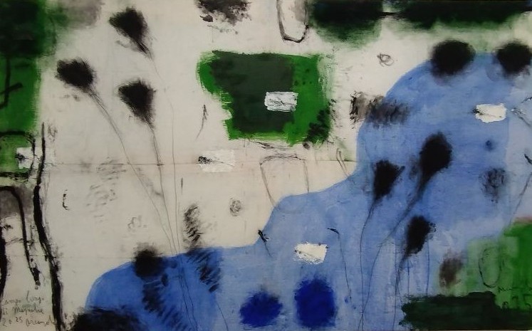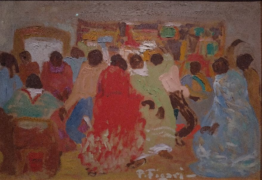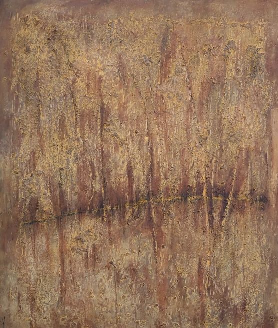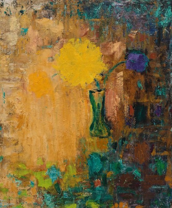 Myös Gallerian toisella puolella liikutaan Etelä-Euroopan ja Afrikan maisemissa. Luonto on edelleen kestävä inspiraation lähde, ja kukat nousevat esiin keskeisinä symboleina. Ne eivät ole pelkästään koriste-aiheita, vaan pelkistettyä henkisyyttä maisemassa. Arcangelo Espositolle Irpinia, Sannio ja Apenniinit eivät ole pelkästään paikkoja – ne ovat täynnä lihaa, juuria, hiljaisuutta ja elävää historiaa. Arcangelon työskentelee sekatekniikalla yhdistäen maata, puutuhkaa ja pigmenttejä.