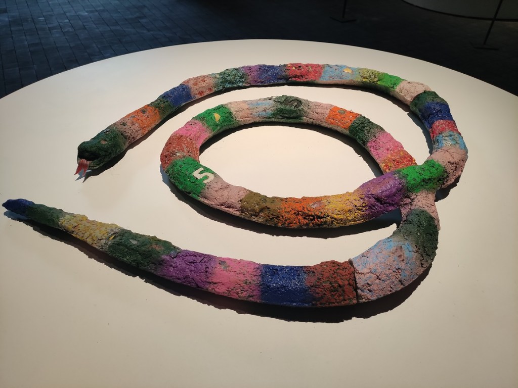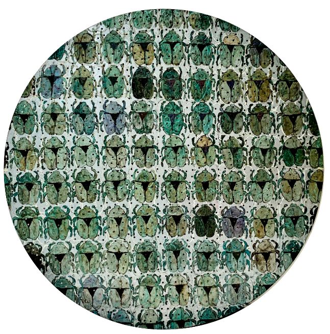 Mäkelä Marika, Lizards and Shivers, Mixed media on wood, 126×123 cm, 2023