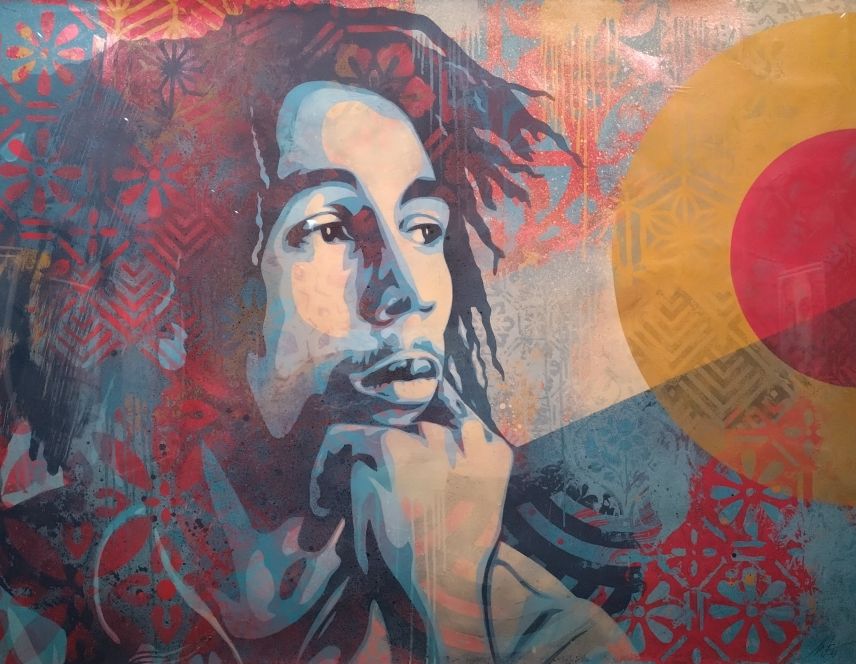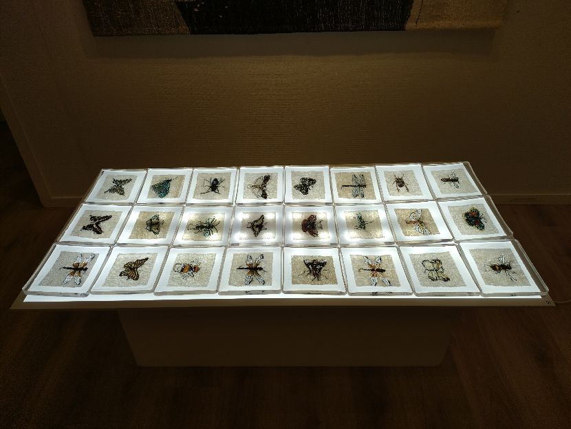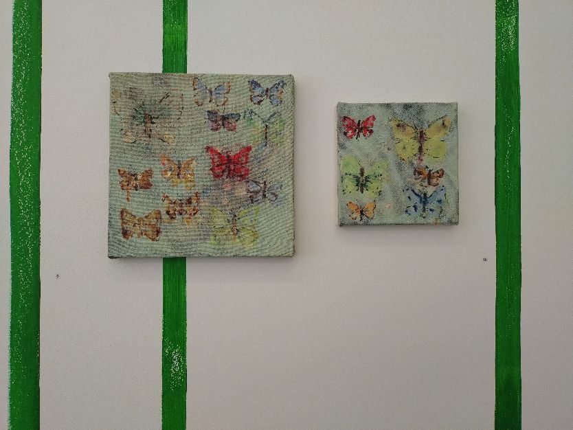 Jyrki Setälä, Perhosbaari II, akryyli ja paperi levylle, 60×80 cm, 2023