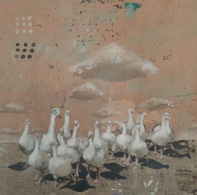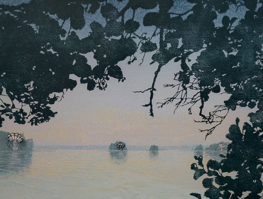 Vesa Arjatsalo, Höyhensaari, tempera kankaalle, 60×70 cm, 2024