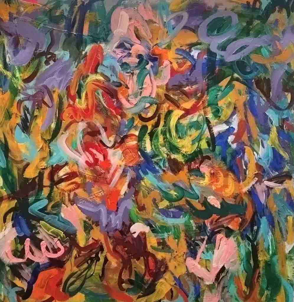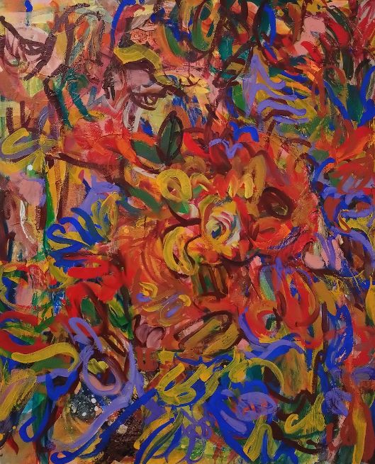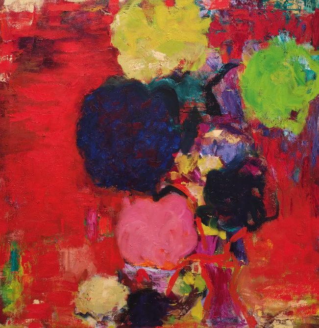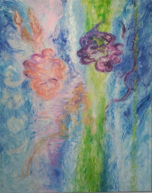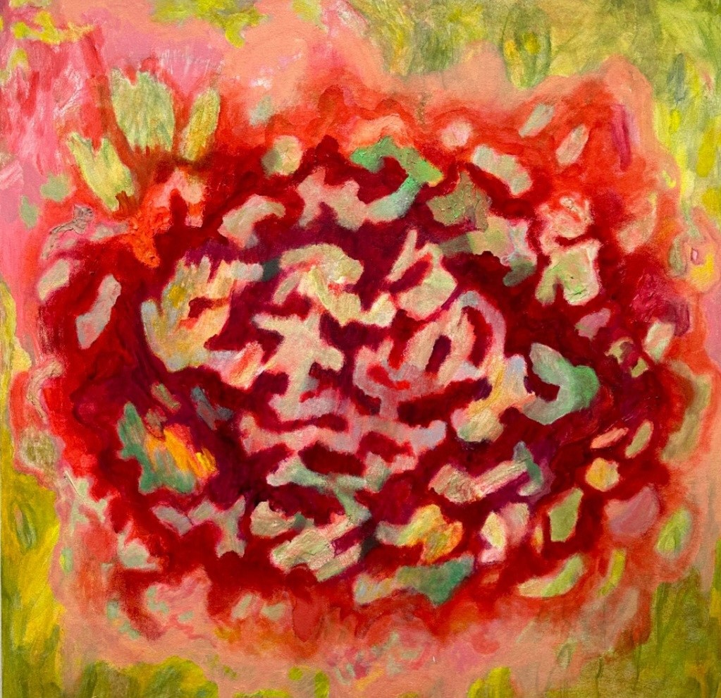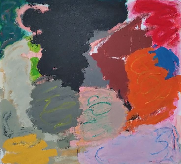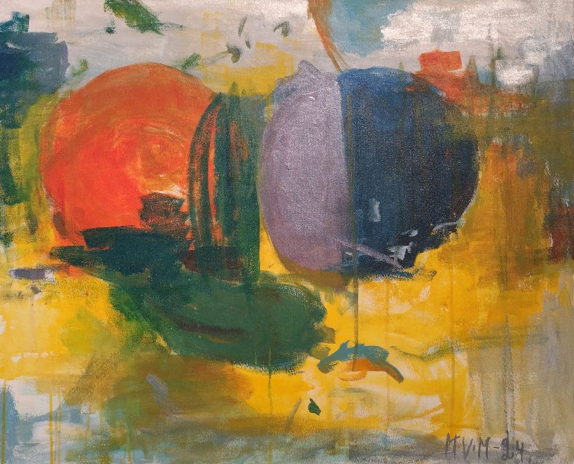 Marja Maljonen, Väri ja muoto, akryyli ja öljy kankaalle, 80×100 cm, 2024