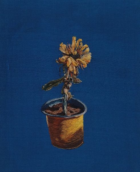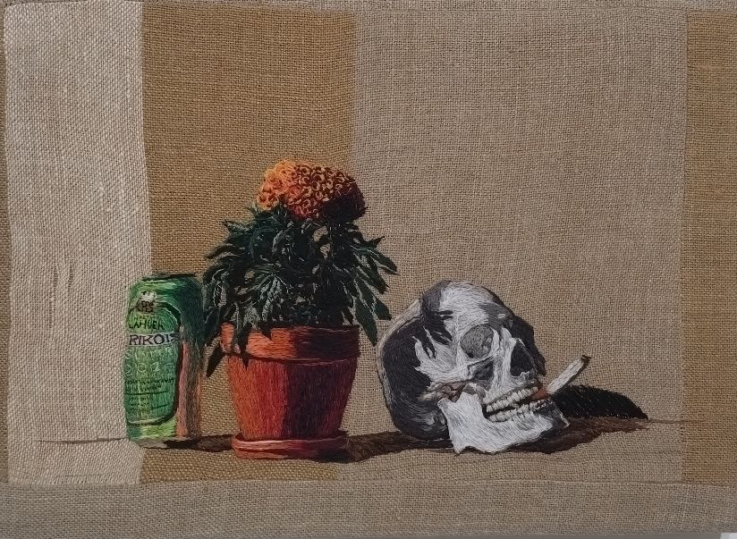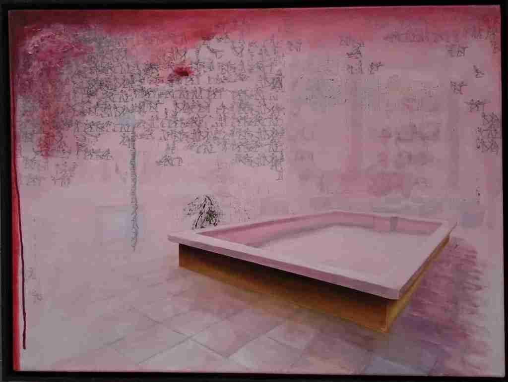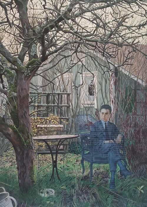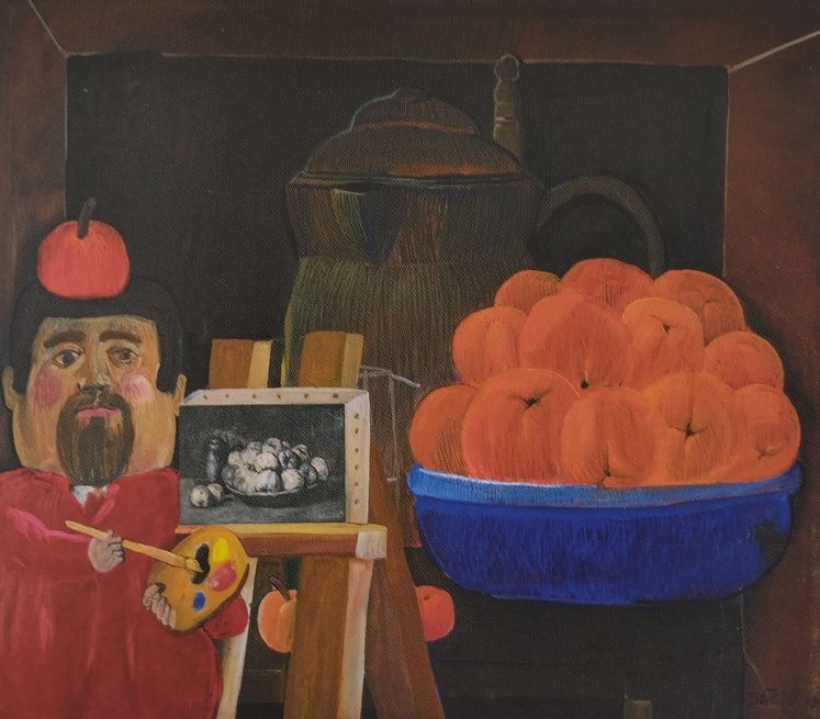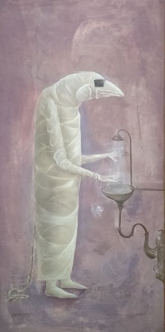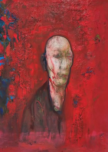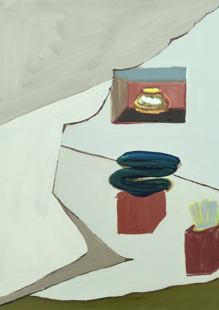 Panu Ruotsalo, Asetelma toiveista, kaipuusta ja yksinäisyydestä, akryyli kankaalle, 112×128 cm, 2023