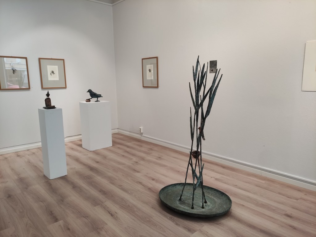 Pirkko Nukarilla on pronssiveistoksia modernilla touchilla. Aihepiiri on sama kuin Albrechtilla. Näyttelyn ripustus on hyvä ja antaa molempien taiteilijoiden teoksiin uusia ulottuvuuksia ja tunnelmaa.