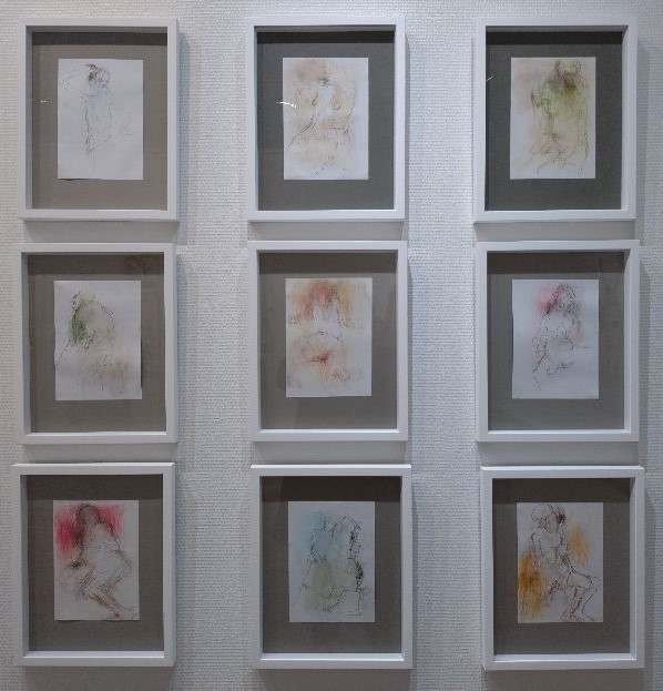 Liesisellä on näytteillä isohkoja kankaalle tehtyjä värimaalauksia, joissa osalla kankaiden reunat ovat hapsuiset. Maalauksissa päämaalina on käytetty mustetta ja siihen yhdistetty lyijykynää, akryylia ym. Pienet teokset ovat paperille tehtyjä ja niissä käytetty mustetta ja lyijykynää. Ne ovat myös kehystetty. Näyttely oli kiinnostava ja antoisa, koska taiteilijalla on oma vaikuttava tyyli ja työt hyviä.
