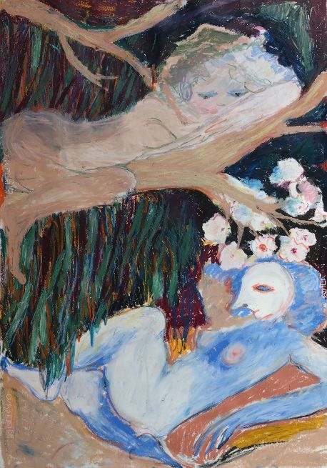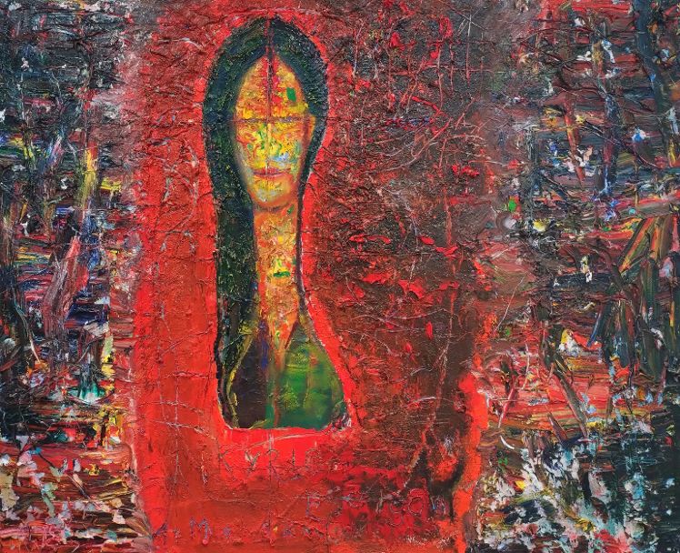 Mäkelä Marika, Love in Desert I, Mixed media on wood, 130×162 cm, 2025