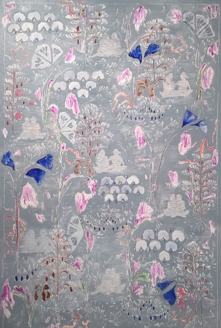 Saila Saranpää, Eden, akryyli, pigmentti ja medium paperille, 170x73x2 cm, 2025