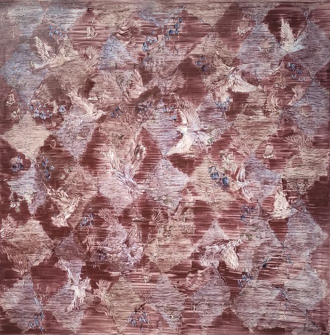 Mäkelä Marika, Unification, Mixed media on wood, 212×203 cm, 2025