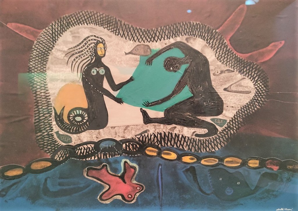 Antti Vuori, Merelinen kosinta, sekatekniikka paperille, 1975