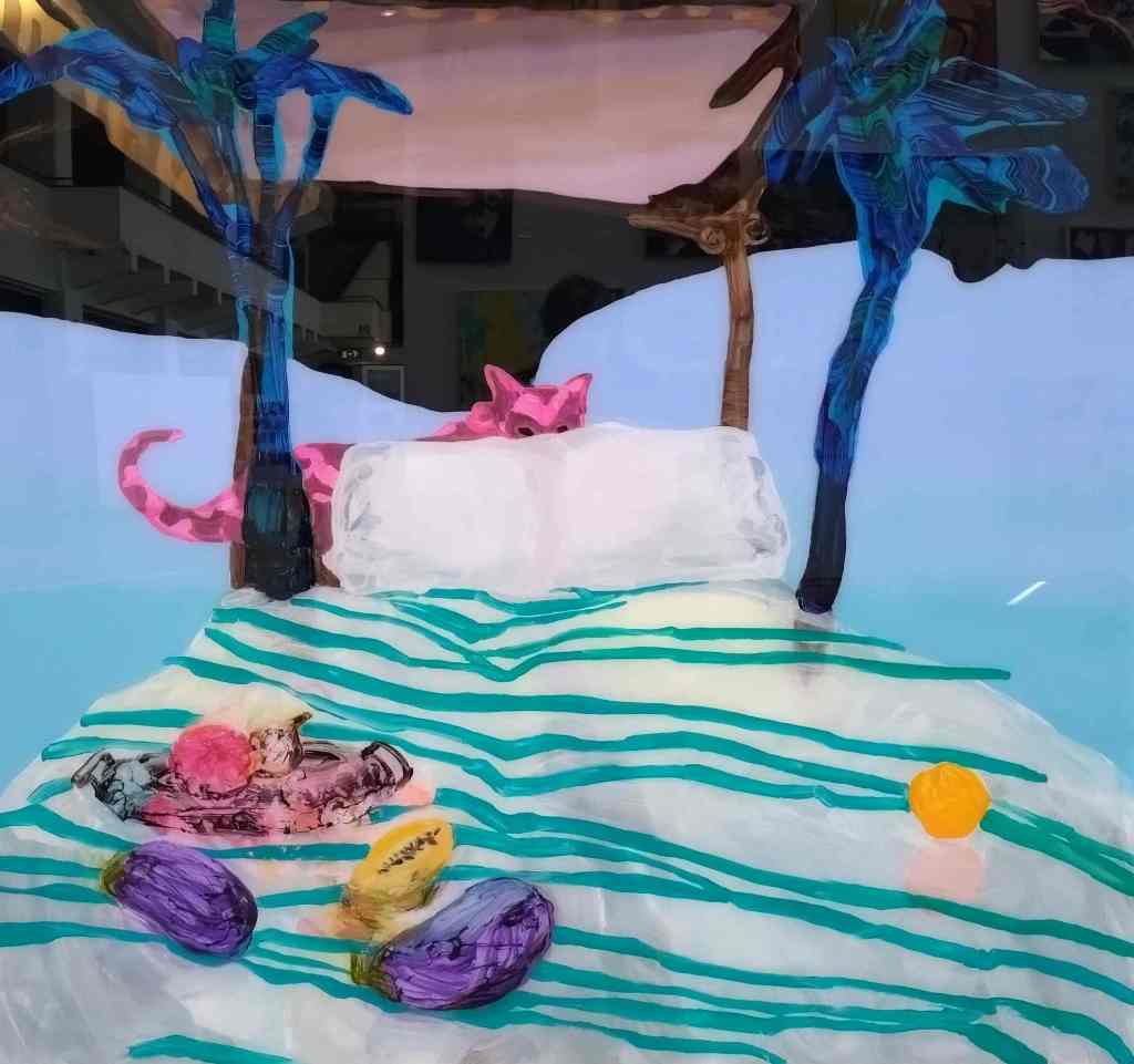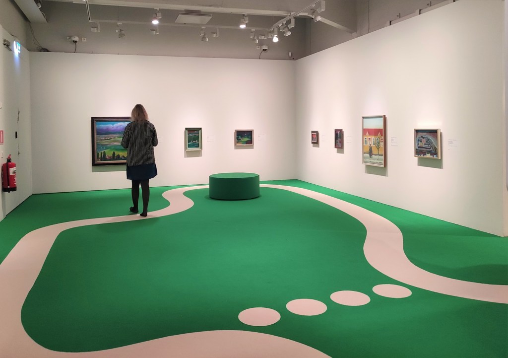 Taidenäyttely on suunnattu ensisijaisesti lapsiperheille. Näyttelyn taiteilijat tunnetaan naivistisesta tyylistä. Taideteokset ovat estetiikaltaan 1970 luvulta; aaltoileva muotokieli ja vahvat värit. Aiheet ovat realistisia. Työt ovat ripustettu normaalia alemmaksi ja lattiaa kiertää ’polku ’, jota voi seurata. tiloissa on myös oma huone lasten omaa taiteen tekemistä varten. Työt kiinnostavat varmasti myös aikuisia joskin niiden katsominen vaatii vähän kumartelua.
