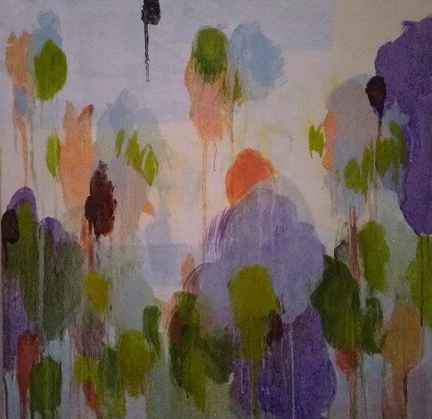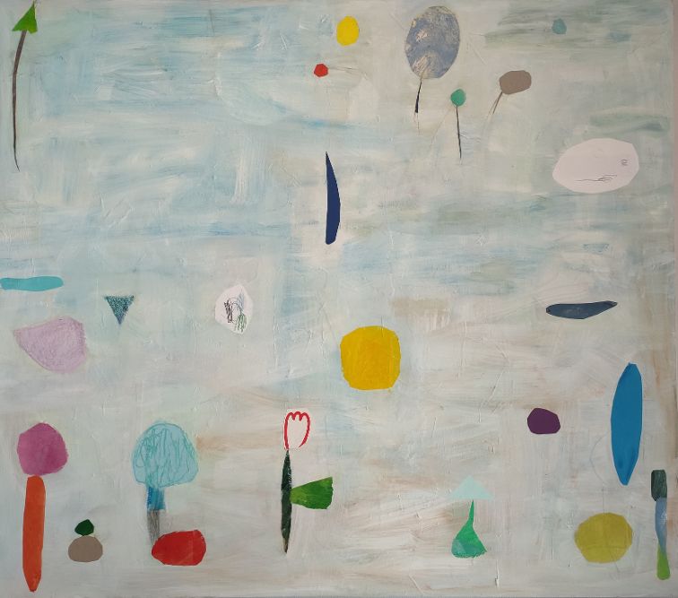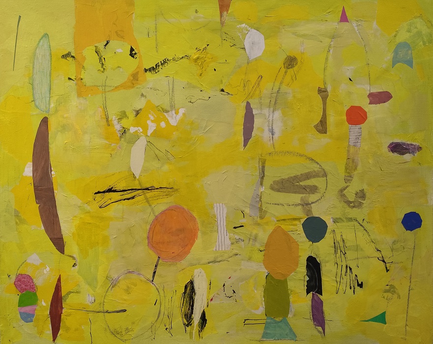 Jyrki Setälä, Color Meadow, akryyli ja paperi levylle, 110×135 cm, 2023