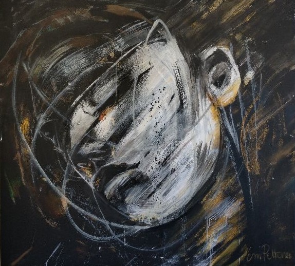 Peltonen Essi, PYSY TÄSSÄ, akryyli ja pastellei kankaalle, 2025