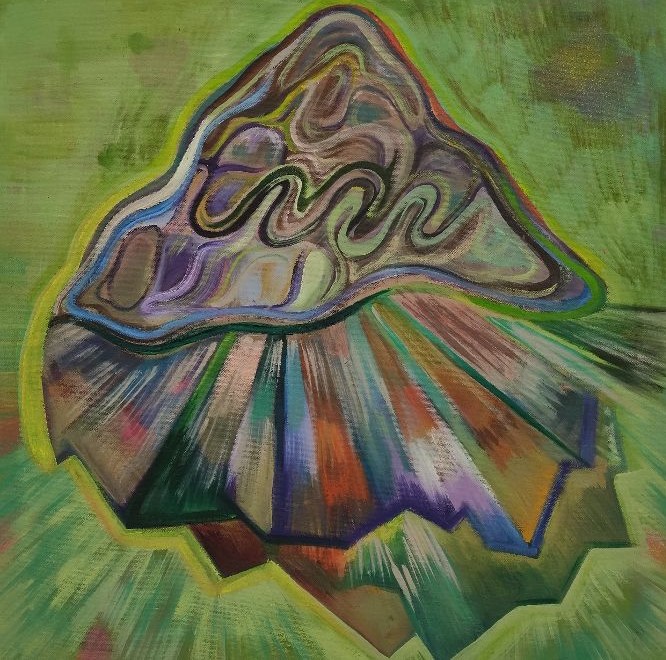 Mäkelä Marika, Vegetate I, Mixed media on wood, 50×39 cm, 2025