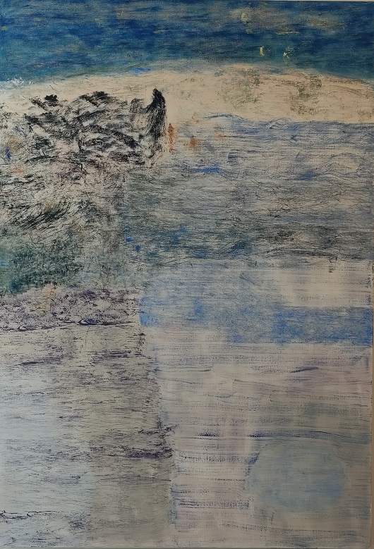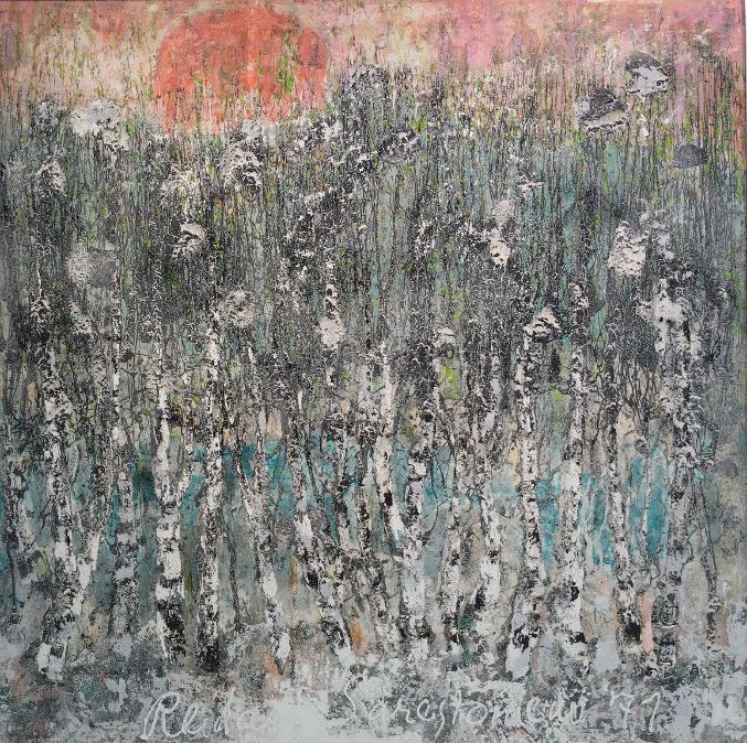 Jyrki Setälä, Dawn, akryyli ja paperi levylle, 108×122 cm, 2023