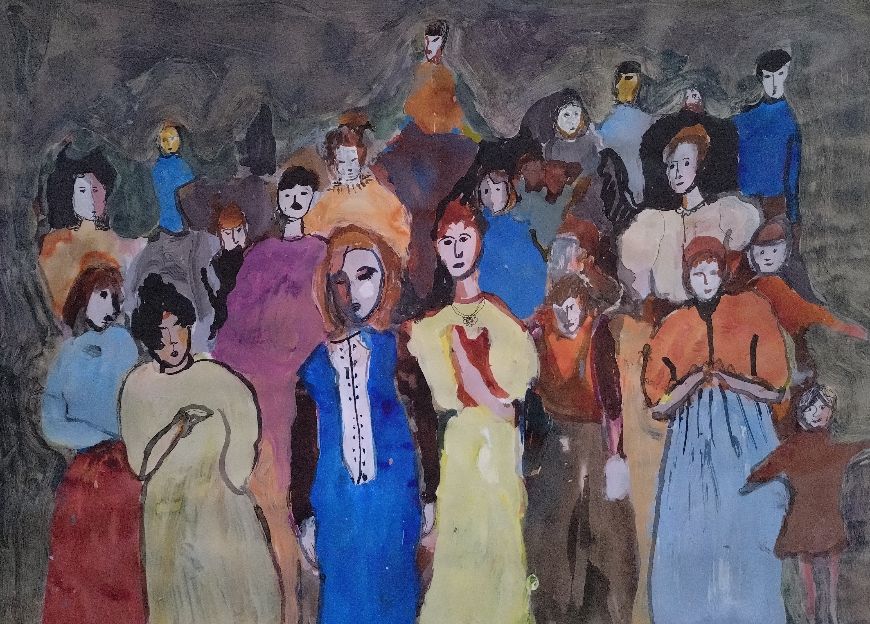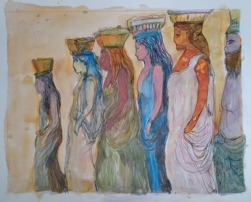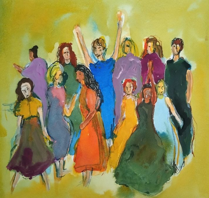 Ruuth Iiris, Femmes de Sombre, muste ja akryyli paperille, 38×53 cm, 2025