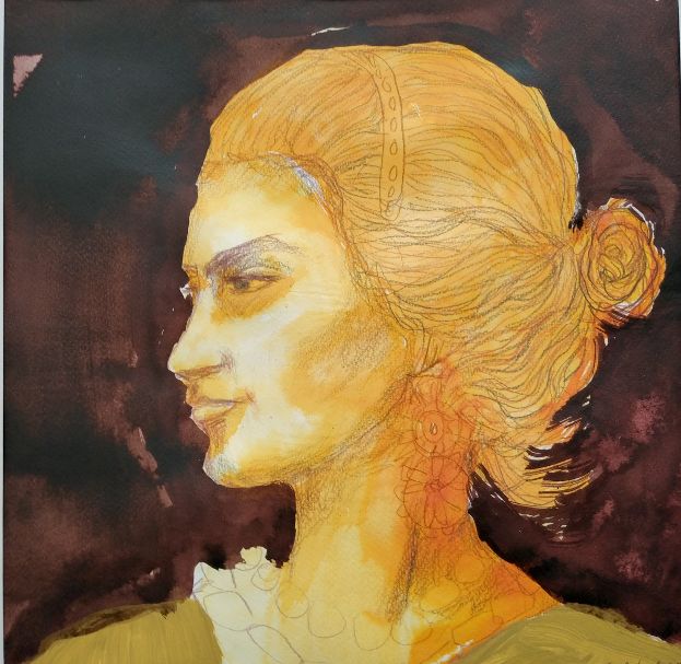 Ruuth iiris, Margaret Thatcher, tussi paperille, 30×30 cm, 2024Ruuth Iiris, , Bianca Maria Sforza, tussi paperille, 30x30cm, 2024Ruuth iiris, Georgia O’Keeffe, tussi paperille, 30×30 cm, 2024