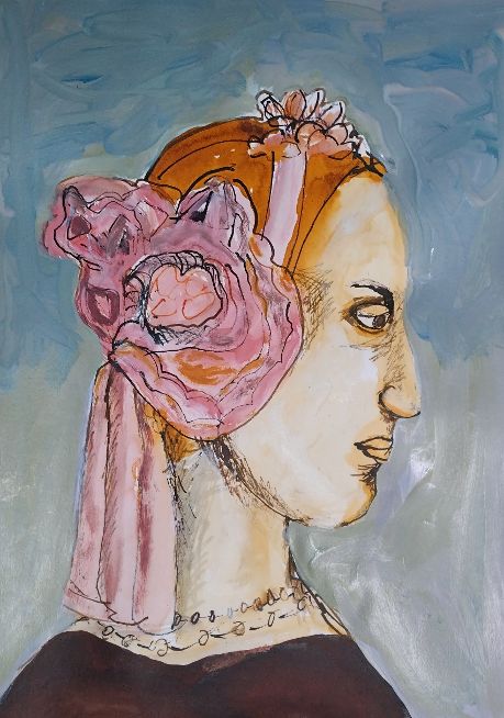 Iiris Ruuth, Battista Sforzan hääkuva, muste paperille, 40×30 cm, kehystettynä 50×40 cm, 2025, hinta 450 e